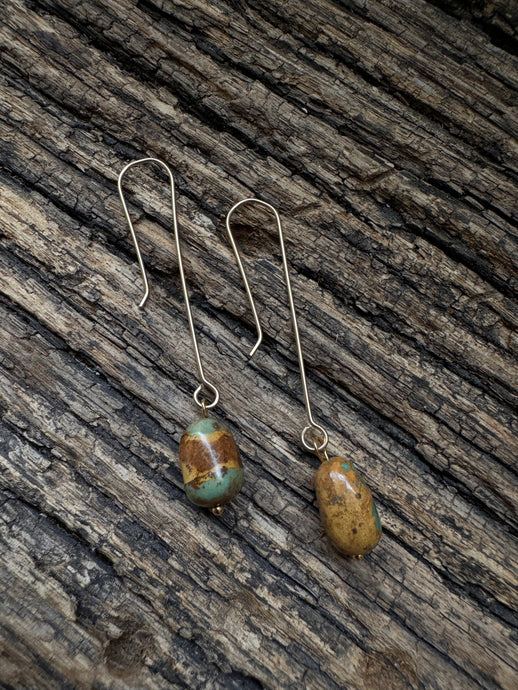 Natural Turquoise Earrings gold filled 4cm drop french hook