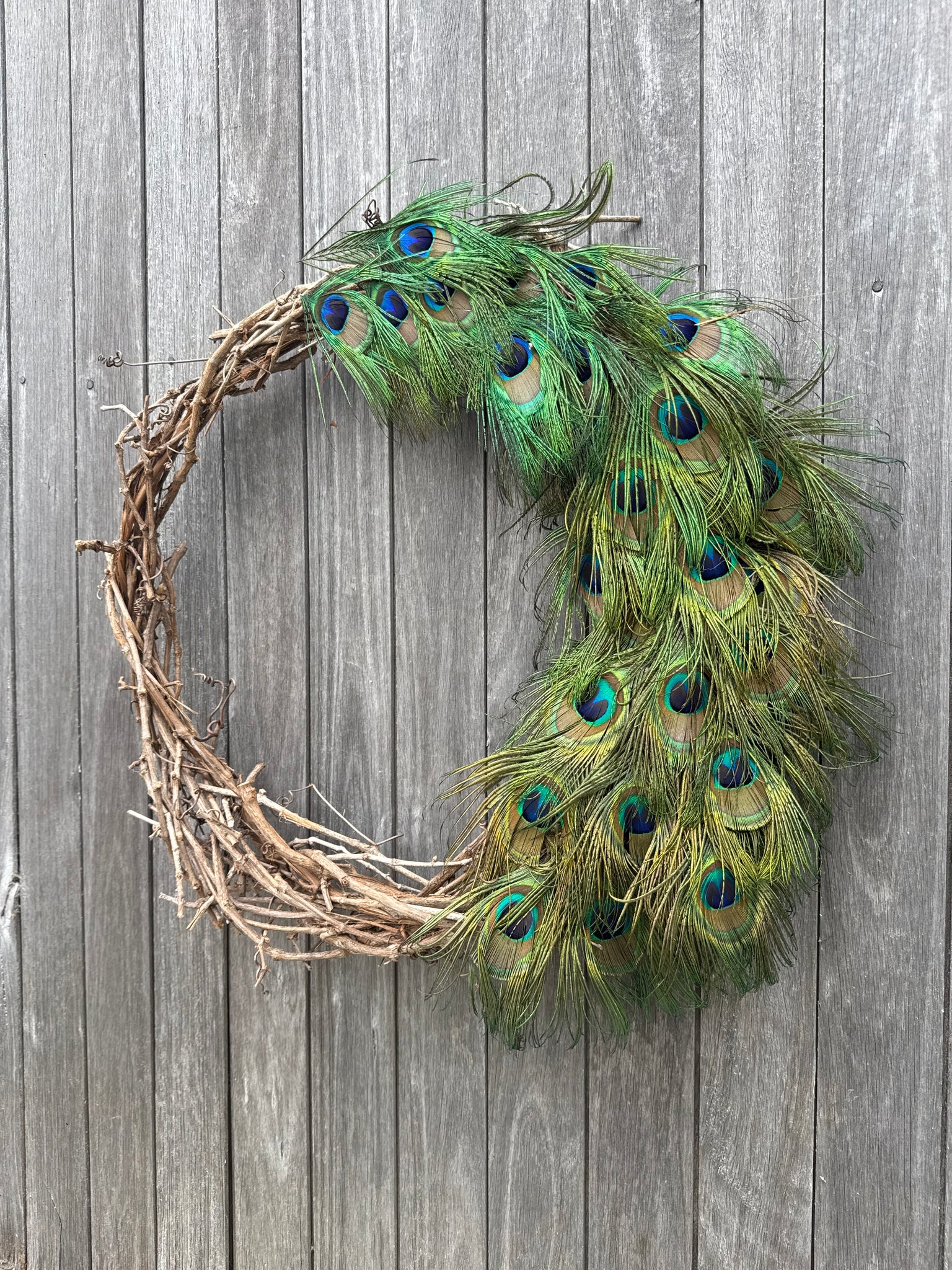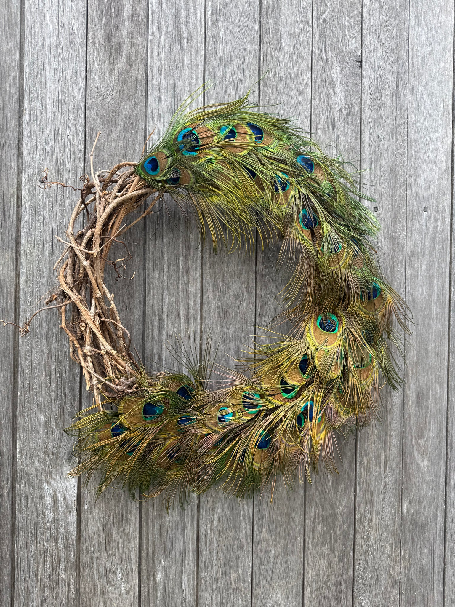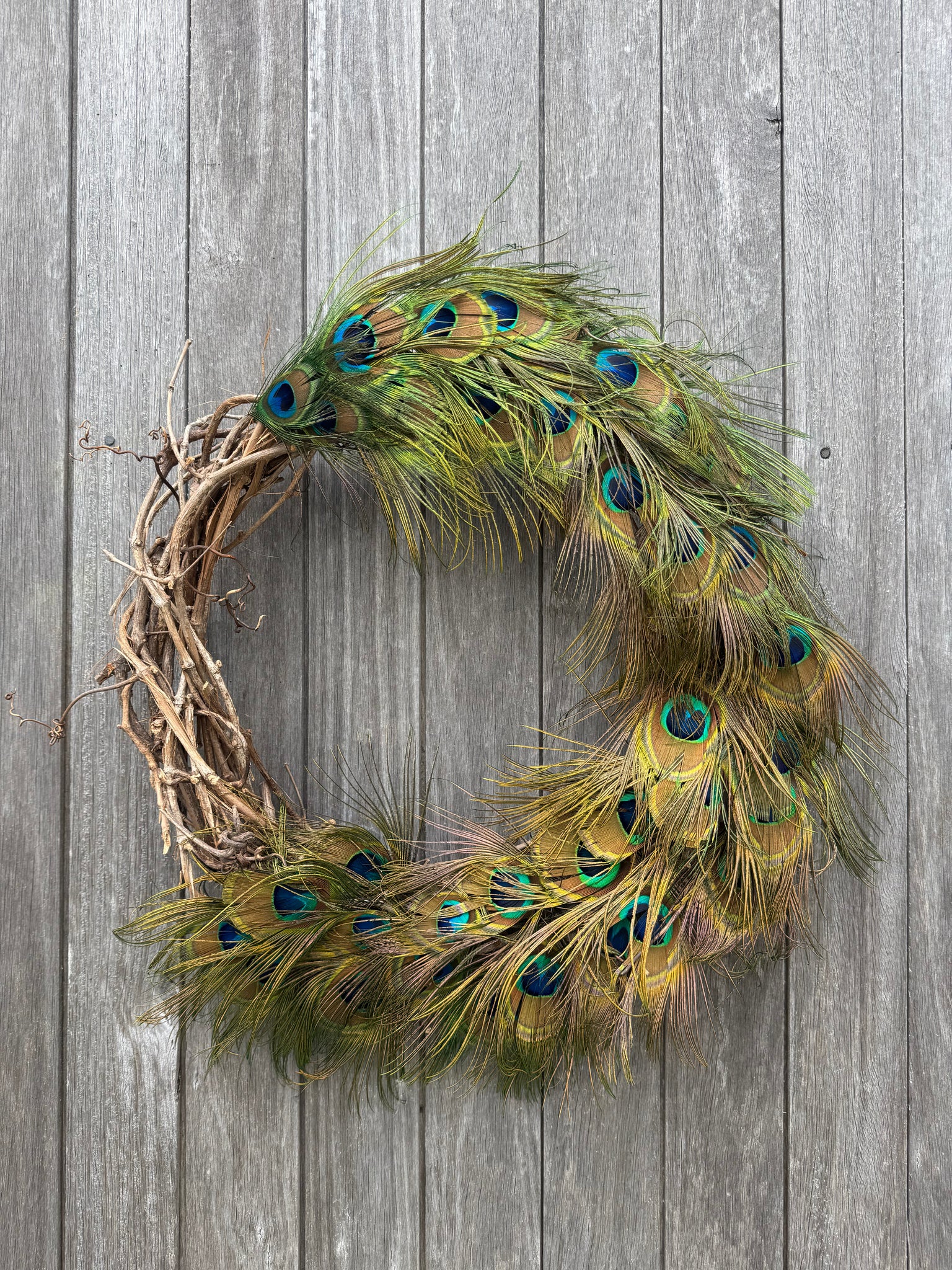Wild Natural Wreath - Handmade Grapevine and Ethically Sourced Peacock Feather Wreath