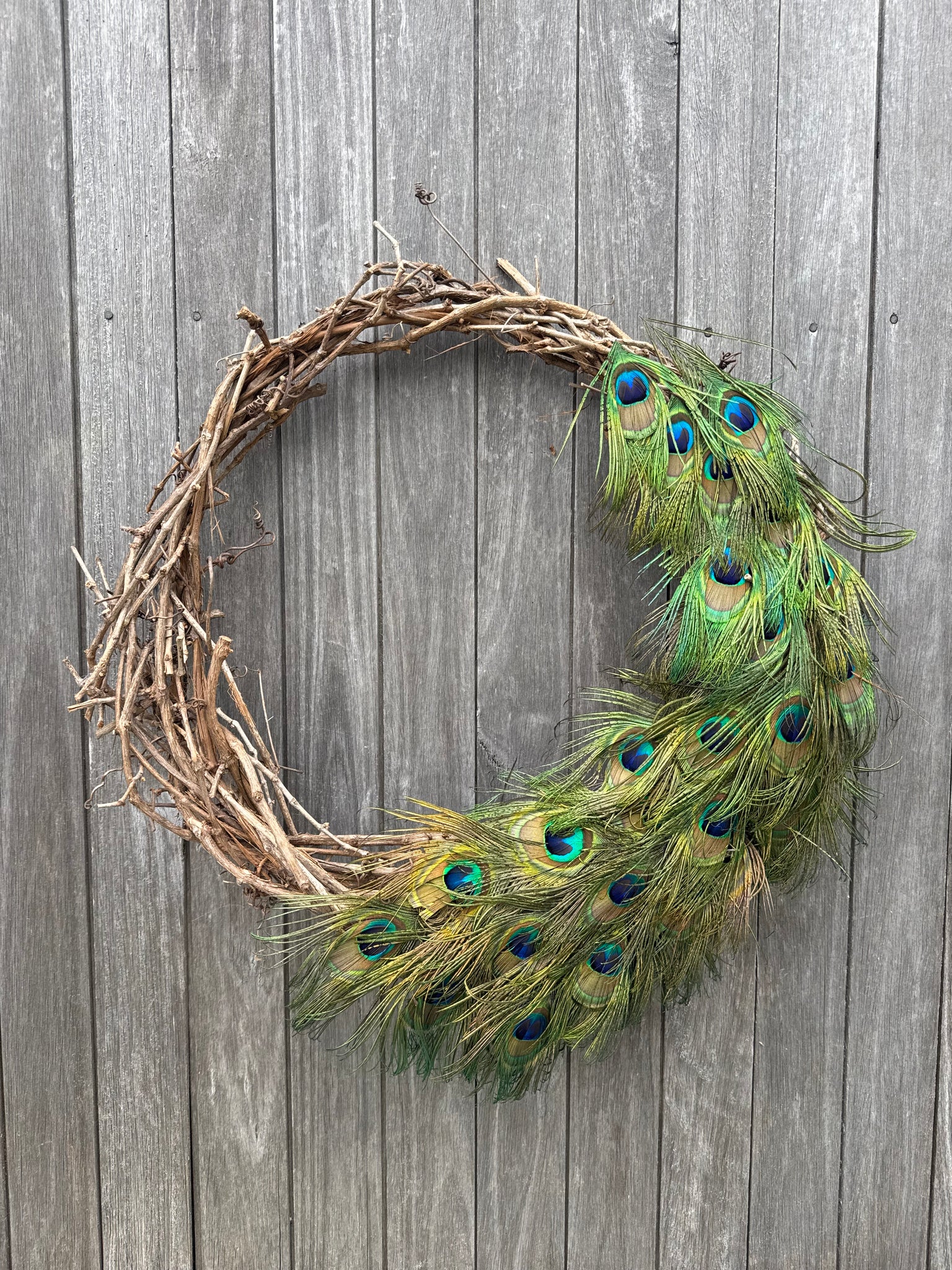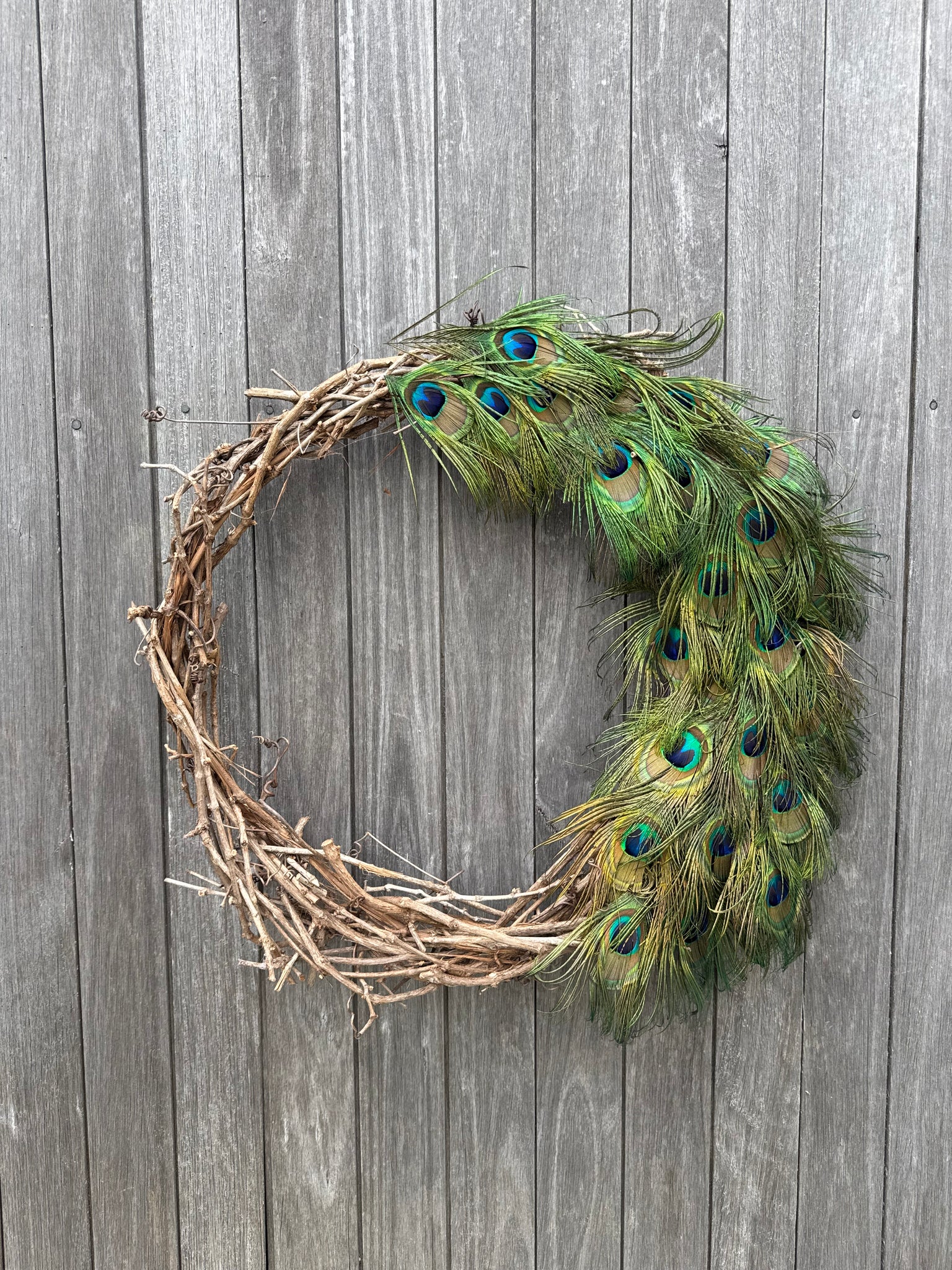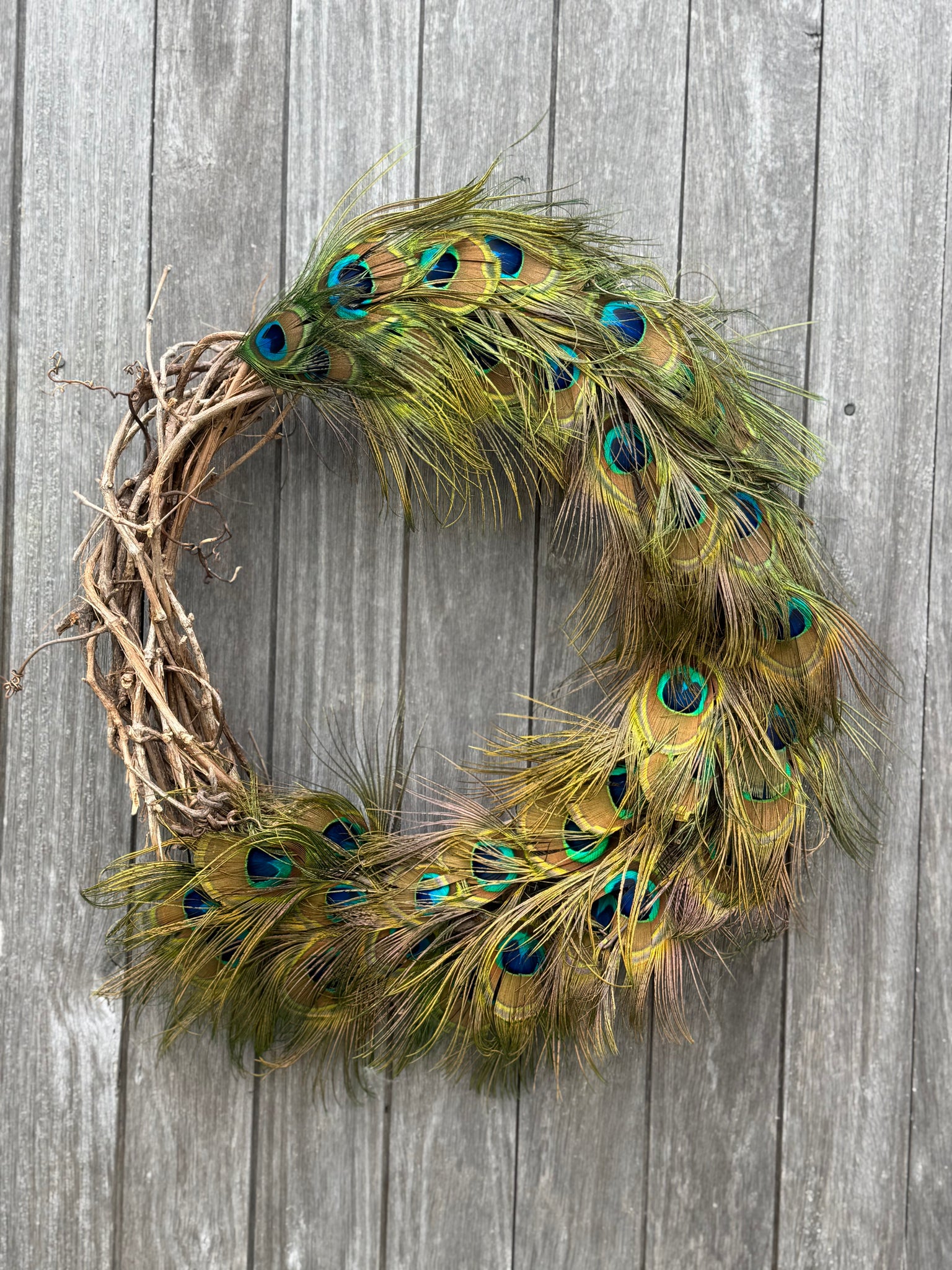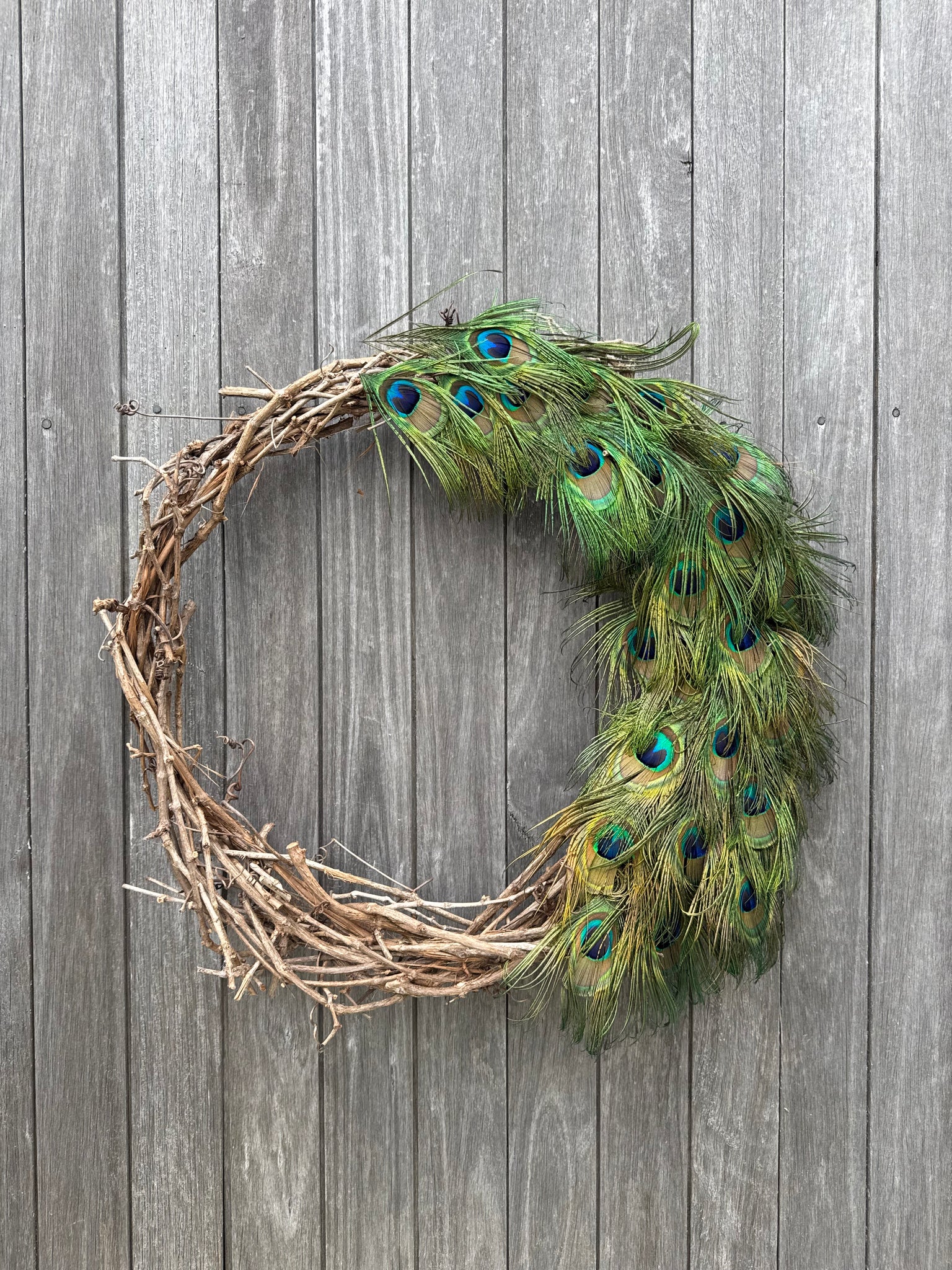 Wild Natural Wreath - Handmade Grapevine and Ethically Sourced Peacock Feather Wreath