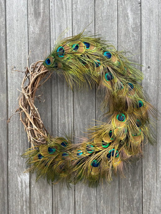 Wild Natural Wreath - Handmade Grapevine and Ethically Sourced Peacock Feather Wreath