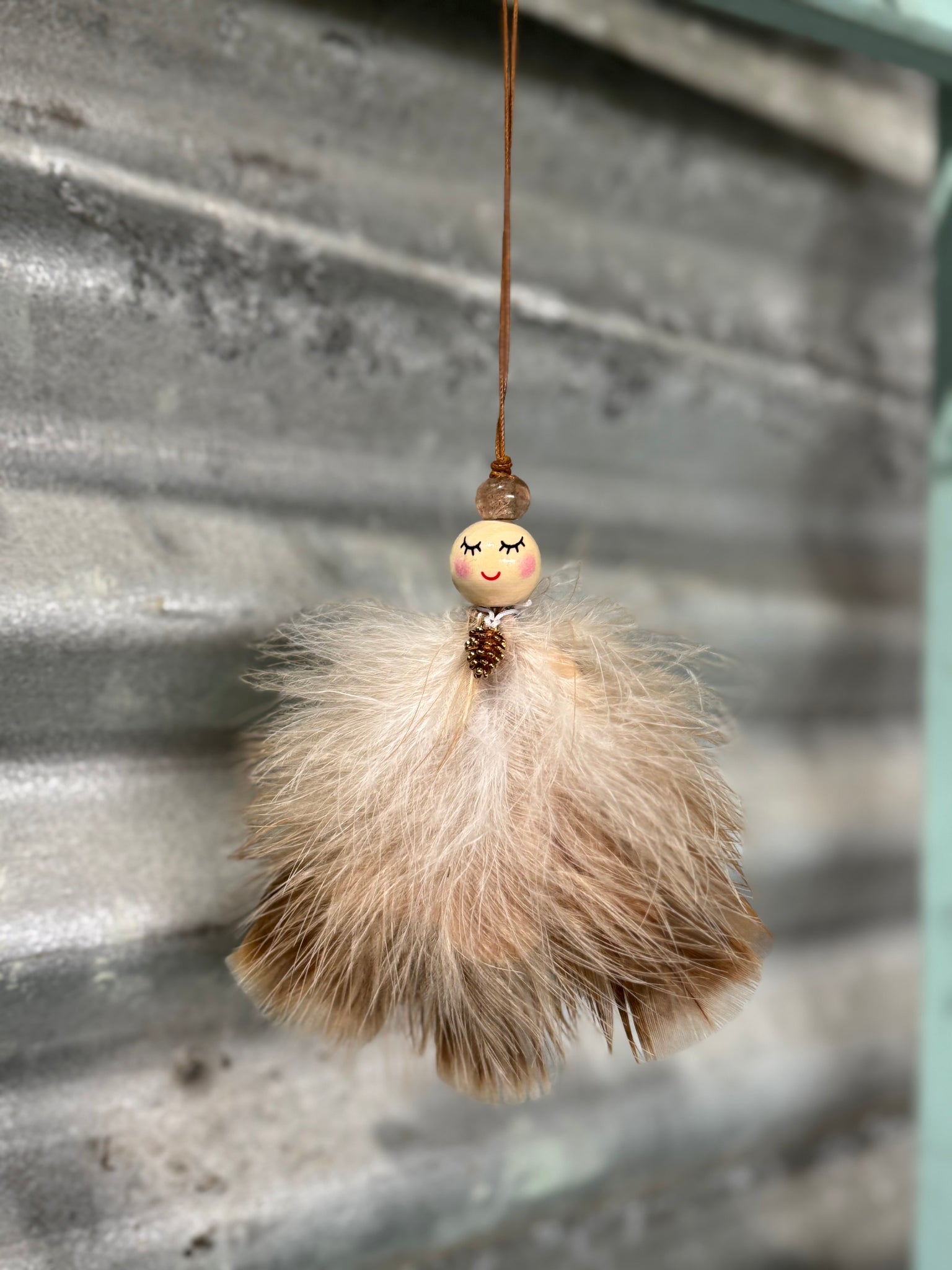 Add a touch of serenity to your Christmas decor with our beautiful feather and clay Christmas angels. Crafted with care, each divine little angel is a one-of-a-kind blend of natural feathers, hand-shaped clay, glistening charms, glass beads and freshwater pearls, perfect for adorning your tree, hanging on your door, or gracing any space that could use a little extra protection. All are Australian made right here by us at Featherdale in the Hunter Valley using ethically sourced feathers from our farm. The clay beads are made using Australian clays and are handmade by Folktreez on the South Coast by the sea. Whether you need an angel watching over you or are searching for a thoughtful gift, these delicate yet durable ornaments bring warmth, peace, and a personal touch to your Christmas celebrations.