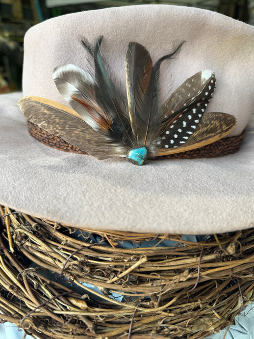 Handcrafted hat pins and brooches using ethically sourced feathers from our farm ready to add that flare to your favourite hat or coat.