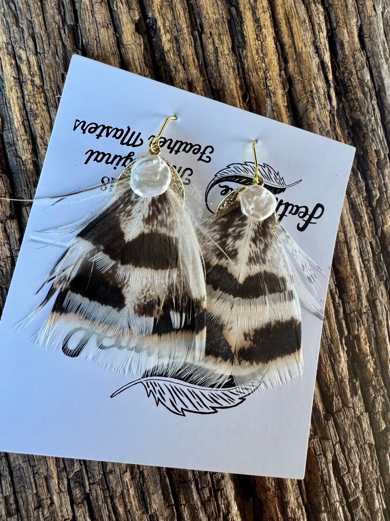 All of our earrings are handcrafted one of a kind pieces. All of the feathers that we use in the creation of our earrings are sourced and collected ethically through natural moulting from our farm or from the farm of friends and families. We are fully licensed to use and create with native Australian bird feathers that have been ethically sourced from licensed owners.
